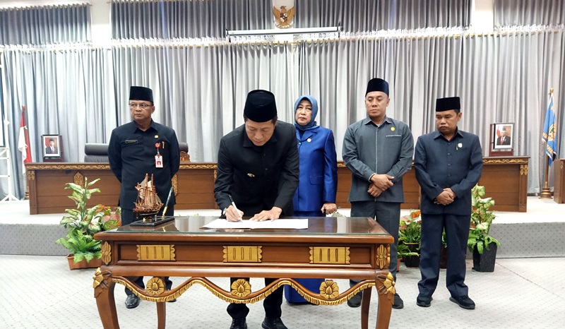 TANDATANGAN PAKTA INTEGRITAS-Pj Bupati Drs Muhlis didampingi Pj Sekda Jufriansyah tandatangani pakta integritas dalam rangka Penyusunan dan Pengesahan Kebijakan Umum Perubahan Anggaran dan Prioritas Plafon Anggaran Sementara Perubahan tahun anggaran 2024 antara Kepala Daerah dan Pimpinan DPRD Kabupaten Barito Utara, Kamis (1/8/2024)