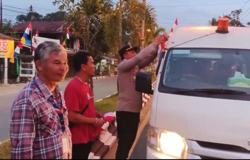 Dipimpin langsung oleh Kapolsek Dusun Timur, IPDA Sulkhan Sururi, S.E., bersama jajaran Polres Bartim dan didukung oleh awak media, kegiatan tersebut berhasil membagikan sebanyak 250 bendera kecil dan 80 bendera berukuran sedang kepada masyarakat yang melintas.