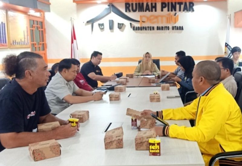 RAKOR LOKASI DEBAT PUBLIK-KPU Kabupaten Barito Utara menggelar rapat bersama tim pemenangan paslon 01 dan paslon 02 untuk menentukan pelaksanaan debat publik, di Rumah Pintar Pemilu, kantor KPU setempat, Sabtu (19/10/2024) malam.