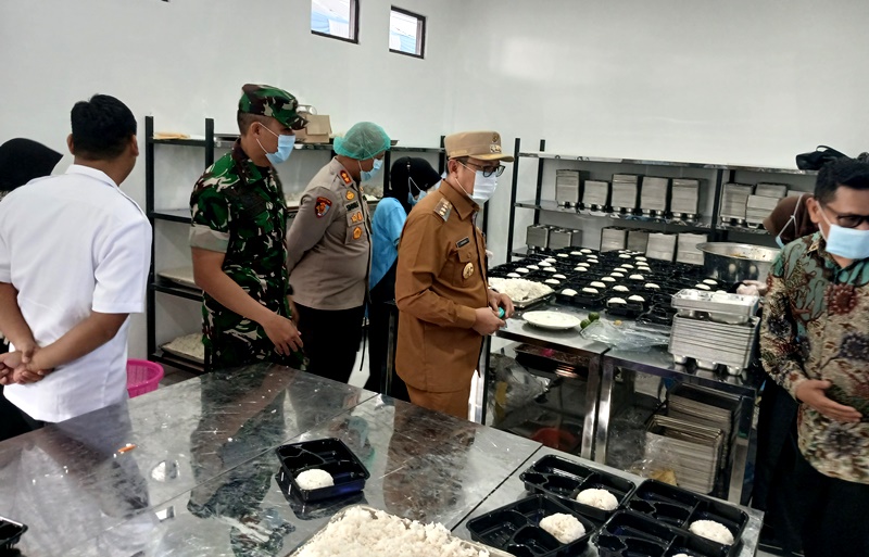 TINJAU RUANG SPPG-Pj Bupati Indra Gunawan didampingi Sekda Muhlis, Unsur FKPD, pengurus Yayasan Bunda Henny Batuah, tim ahli gizi menijau ruang SPPG usai diresmikan, Senin (22/9/2025)