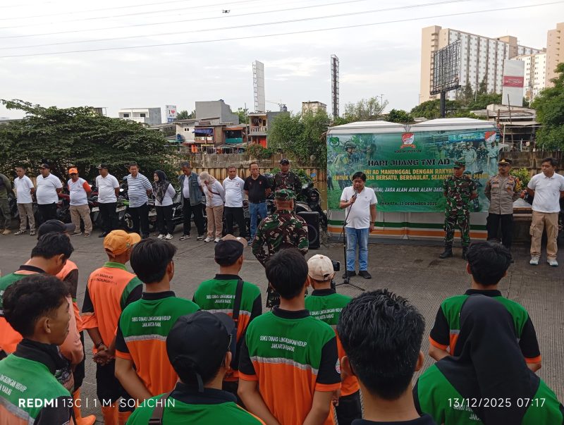 Jakarta Barat – Dalam rangka menyambut Hari Juang TNI AD dengan tema “TNI AD Manunggal dengan Rakyat Untuk Indonesia Bersatu, Berdaulat, Sejahtera dan Maju” dan menyambut HUT Kodam Jaya ke-76, Kodim 0503/Jakarta Barat berkolaborasi dengan Pemerintah Kota (Pemkot) Jakarta Barat, Forkopimko Jakarta Barat dan berbagai Komponen Pendukung (Komduk) melaksanakan kegiatan Karya Bakti bersih-bersih sampah di sepanjang Sungai Ciliwung, tepatnya di depan Mall Seasoncity, Jl. Prof. Dr. Latumeten, Tambora, Jakarta Barat. Sabtu (13/12/2025).