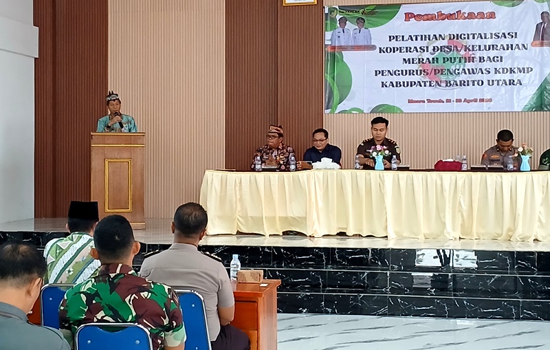 BUKA PELATIHAN DIGITALISASI KOPERASI-Mewakili Bupati Barito Utara, Sekda Drs Muhlis membuka secara resmi kegiatan pelatihan digitalisasi koperasi bagi pengurus dan pengawas koperasi desa/kelurahan Merah Putih, yang digelar di Aula SMPN 1 Muara Teweh, Selasa (21/4/2026).