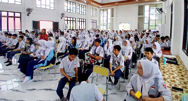 PESERTA SOSIALISASI UKBI-Siswa dan siswi kelas IX saat mengikuti kegiatan sosialisasi dan Simulasi Uji Kemahiran Berbahasa Indonesia (UKBI) Adaptive di Aula SMPN 1 Muara Teweh, Selasa (21/10/2025).