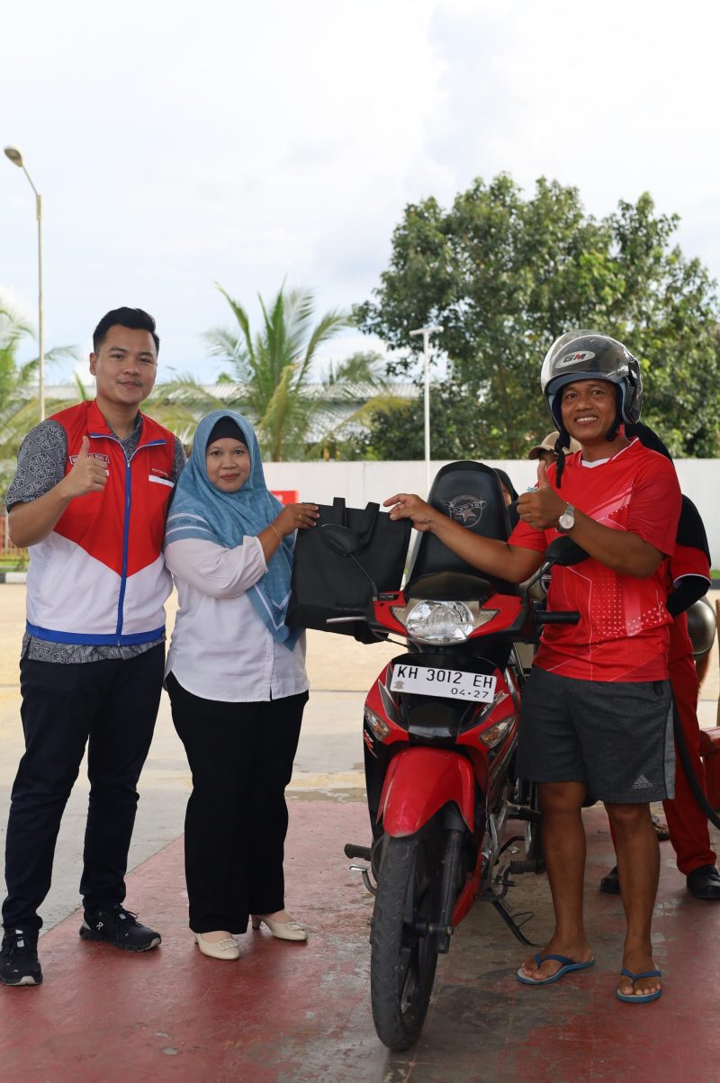 Perwakilan PT. Pertamina Patra Niaga, SBM Kalteng III Fuel Muhammad Ridho Hasbullah juga turut hadir dalam membagikan takjil dan merchandise untuk konsumen setia SPBU Perusda tersebut.