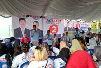 KAMPANYE DIALOGIS DI PANGKUH RAYA-Paslon bupati dan wakil bupati Barito Utara nomor 2 AGI SAJA bersama tim kampanye pemenangan saat melaksanakan kampanye dialogis di…