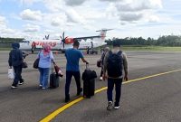 ARUS BALIK PENUMPANG-Sejumlah penumpang maskapai Wings Air dari Bandara Muhammad Sidik (HMS) Muara Teweh Kabupaten Barito Utara berangkat ke Banjarmasin, Kamis (26/3/2026) TEWENEWS, Muara…