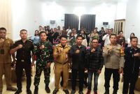 FOTO BERSAMA PANWASLU-Usai apel siaga, Asisten Sekda H Yaser Arapat bersama unsur FKPD, Ketua Bawaslu, tim pemenangan paslon foto bersama dengan anggota pengawas pemilu…