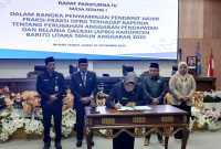 PERSETUJUAN BERSAMA-Unsur pimpinan DPRD Barito Utara bersama Pemkab Barito Utara menandatangani persetujuan bersama terhadap tiga buah Raperda inisiatif dalam Rapat Paripurna DPRD yang digelar…