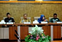 HADIRI RAKOR PENANGGULANGAN KEMISKINAN-Ketua DPRD Barito Utara Hj Mery Rukaini (tengah) bersama Pj Bupati Indra Gunawan dan unsur FKPD hadiri rakor penanggulangan kemiskinan secara…