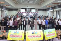 FOTO BERSAMA PESERTA MUSORKABLUB-Plt Ketua Umum KONI Barito Utara H Jawawi bersama pengurus KONI foto bersama dengan para peserta Musyawarah Olahraga Kabupaten Luar Biasa…