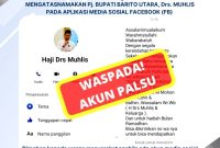 AKUN PALSU-Sebuah akun palsu beredar di media sosial facebook yang mengatasnamakan PJ Bupati Barito Utara Drs Muhlis. Dihimbau masyarakat agar berhati-hati dan tidak mudah…