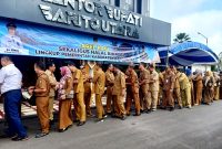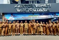 BERSAMA PJ BUPATI-Kepala perangkat daerah, staf ahli bupati asisten sekda foto bersama Pj Bupati Muhlis dan Pj Sekda usai apel pagi sekaligus halal bi…