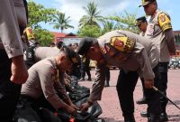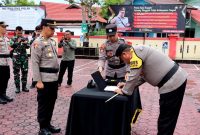 CEK KESIAPAN PERSONEL-Kapolres Barito Utara AKBP Gede Eka Yudharma Bersama pejabat Polres lainnya melakukan pengecekan terhadap kesiapan personil dalam melaksanakan tugas pengamanan TPS pada…