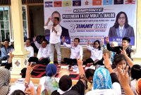 JURU KAMPANYE PASLON 02-Juru kampanye (Jurkam) 02 Jimmy Inri sampaikan orasi di hadapan masyarakat yang menghadiri kampanye dialogis dan tatap muka, Sabtu (12/7/2025) TEWENEWS,…