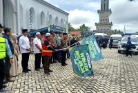LEPAS ROMBONGAN WISATA BELANJA ANAK YATIM PIATU-Pj Bupati Barito Utara, Drs Muhlis didampingi Kepala Departemen Head CSR PT SMM, Abdul Syukur saat melepas keberangkatan…