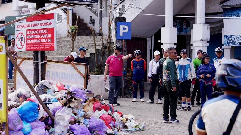 Di lokasi tersebut diketahui telah terpasang papan imbauan dari DLH yang melarang masyarakat membuang atau menumpuk sampah di area depan pasar dan pertokoan. Dalam imbauan tersebut juga tercantum ancaman sanksi berupa pidana kurungan 6 (enam) bulan atau denda hingga Rp50 juta bagi pelanggar. Hal tersebut berdasarkan Perda No 2 tahun 2026