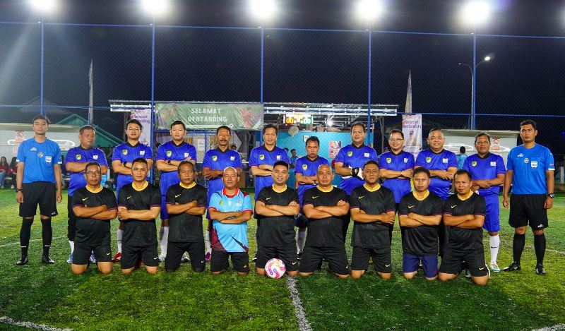 PEMBUKAAN TOURNAMEN MINISOCCER-Usai membuka tournamen minisoccer Pj Bupati Barito Utara Cup tahun 2024, Pj Bupati Muhlis bersama pejabat lainnya melaksanakan pertandingan eksebisi, Minggu (11/8/2024) malam.