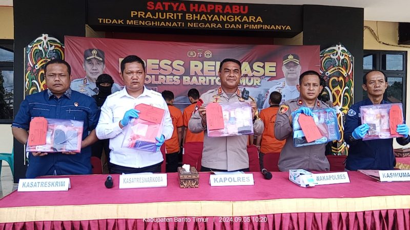 Kegiatan Press Release tersebut dipimpin langsung oleh Kapolres Barito Timur AKBP Viddy Dasmasela, didampingi Waka Polres Kompol Andika Rama, Kasat Reskrim AKP Adhy Heriyanto dan Kasat Narkoba Iptu Budi Utomo, Kasi Humas Ipda Kholid Muqorobin di Mapolres setempat, Kamis 5 September 2024.