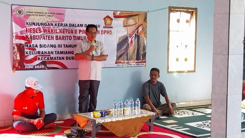 TEWENEWS, Barito Timur – Wakil Ketua II DPRD Kabupaten Barito Timur, Ir. Eskop, MAP melaksanakan kunjungan kerja dalam rangka reses masa sidang III Tahun 2025 di salah satu rumah warga di KM 5 Kelurahan Tamiang Layang, Kecamatan Dusun Timur, Senin 16 Juni 2025.