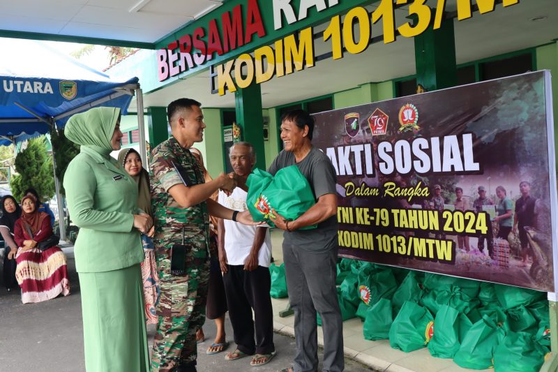 Wujud Bhakti TNI di HUT ke 79, Kodim 1013/Mtw Gelar Baksos dan Pembagian Sembako Gratis